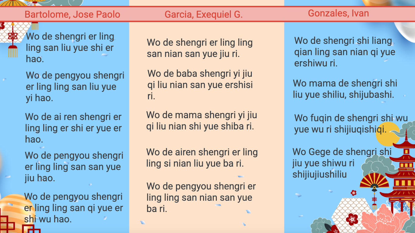 Writing birthdays in Mandarin.
